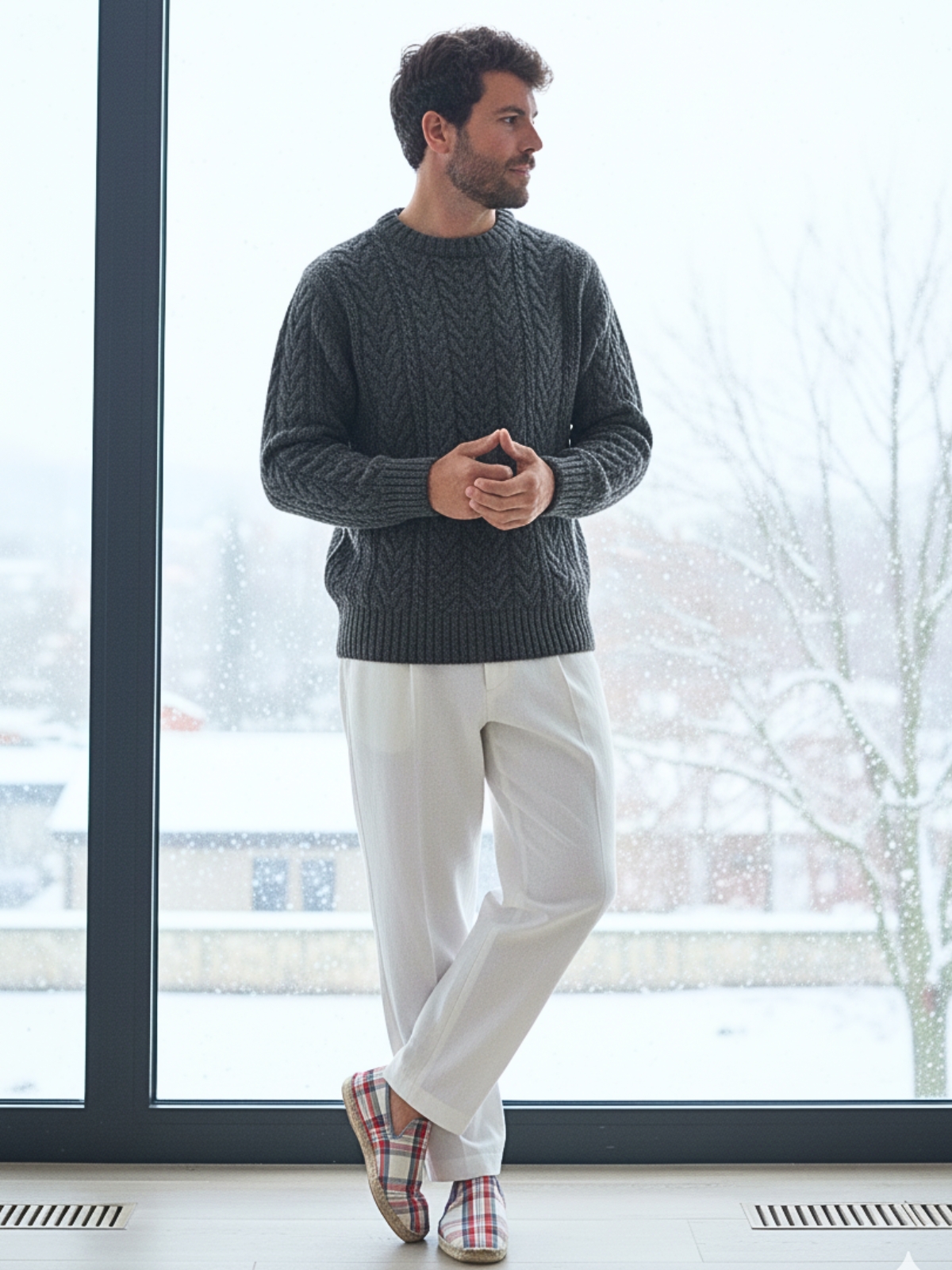 Pantuflas de lana virgen para hombre hechas a mano – Modelo Léon